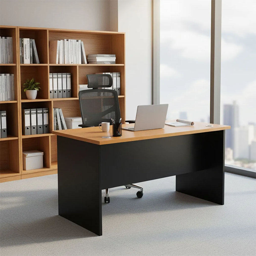 El ESCRITORIO RECTO DE 140 CM es una estación de trabajo robusta y de diseño ejecutivo, ideal para oficinas gerenciales, despachos o cualquier espacio que requiera una superficie amplia y duradera.