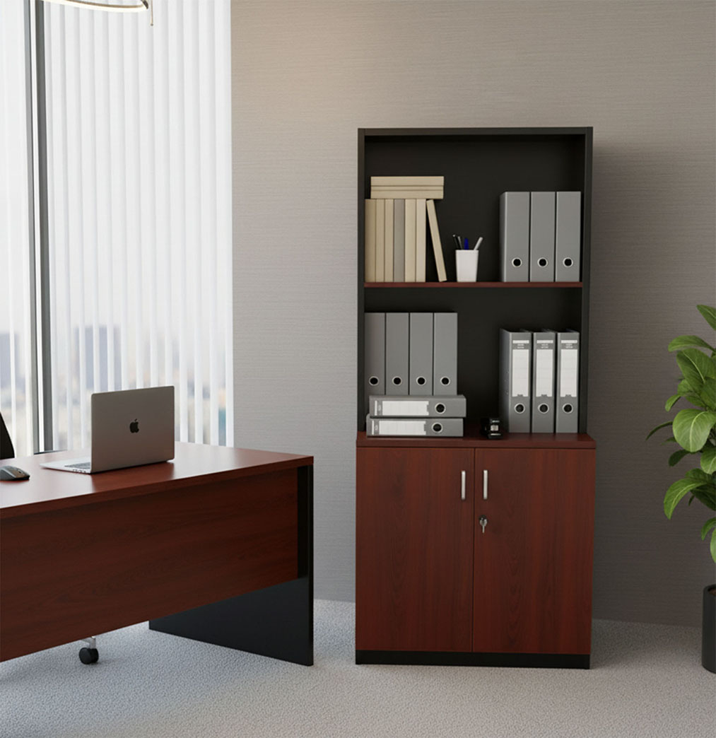 Estantería Librería Con 2 Puertas Y Repisas Para Oficina Cerezo