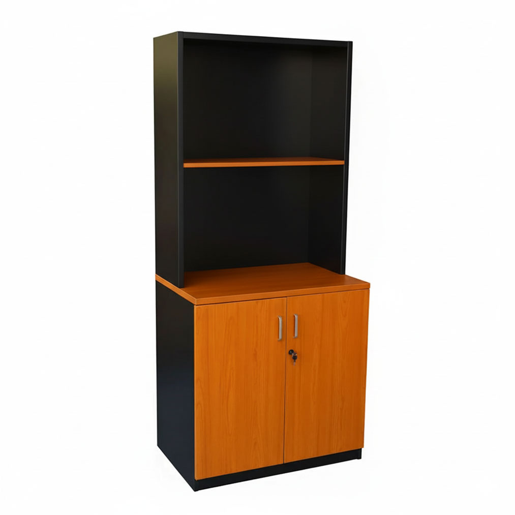 El ESTANTE BIBLIOTECA 2 PUERTAS es una solución de almacenamiento vertical de alta capacidad que combina un espacio de archivo cerrado y seguro en la parte inferior con estanterías abiertas en la parte superior.