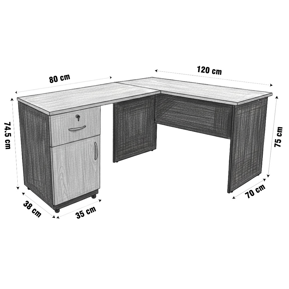 El PACK TRENTO 120 CM + EXTENSIÓN configura una estación de trabajo en «L» optimizada para el espacio (con una longitud de 120 cm), ideal para oficinas que requieren funcionalidad ejecutiva sin sacrificar espacio Ambos componentes mantienen el estándar de calidad con una estructura de melamina de 25MM (se asume el espesor ejecutivo para el escritorio) y un acabado en Peral de estilo tradicional.